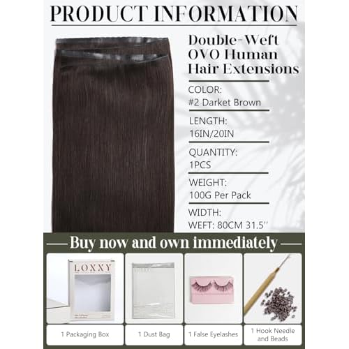 LOXXY Double Weft PU OVO Human Hair Extensions - Genius and PU Invisible Butterfly Weft Hair Extensions Real Human Hair - 16 Inch 100g Darkest Brown, Width 31.5"(80cm)