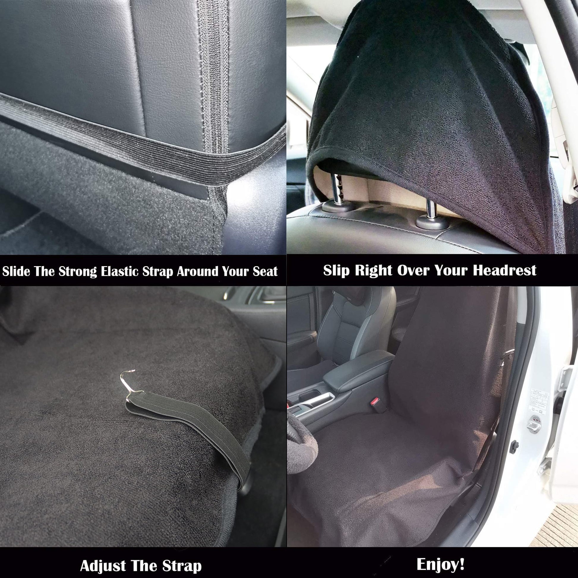 - Perfect Size: Our car seat towel with large, full coverage design measured at 29.5”wide x 56" long will protect your whole seat comfortably. Our adjustable elastic strap seat protector is designed to fit most vehicle seats snugly.