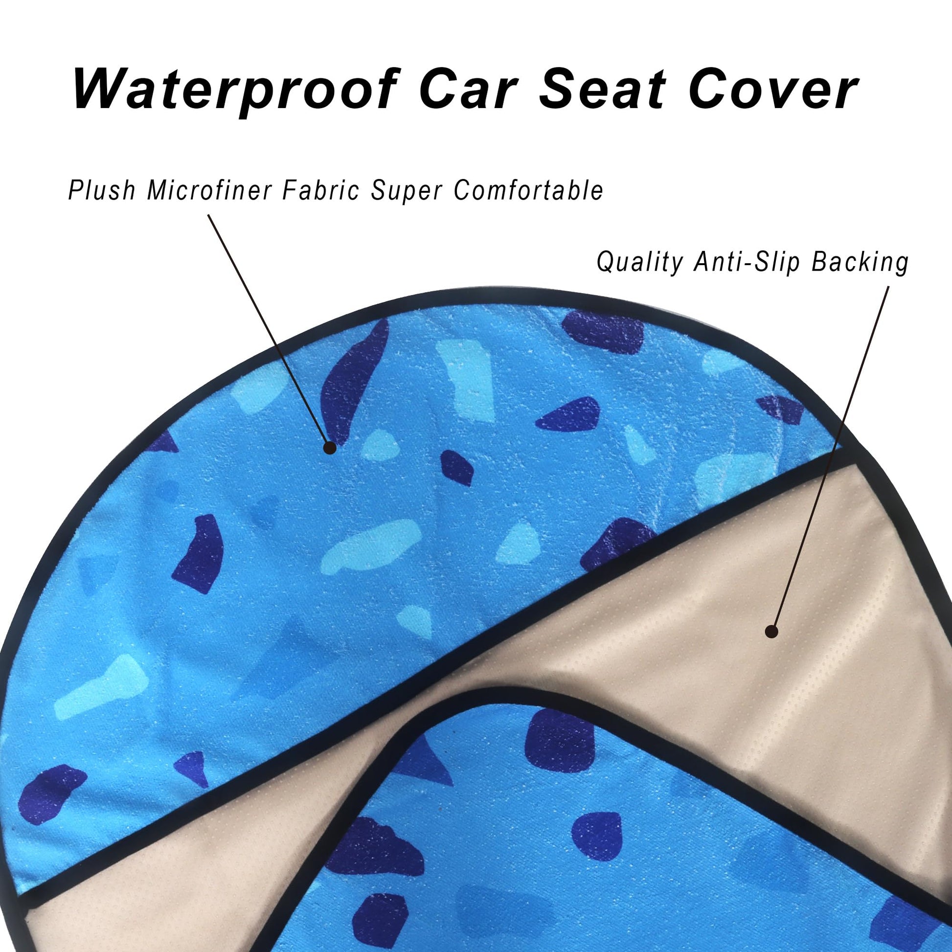 - Made From 3 Layer Material: (Front) Blue Marbling pattern printed on towel cloth, It will keep your car seats fresh and clean. (Middle) Waterproof fabric that is designed to guard your seat against moisture and sweat. (Back) This seat cover are designed with a non-slip backing fabric that's super comfortable and won't slip off your seat.