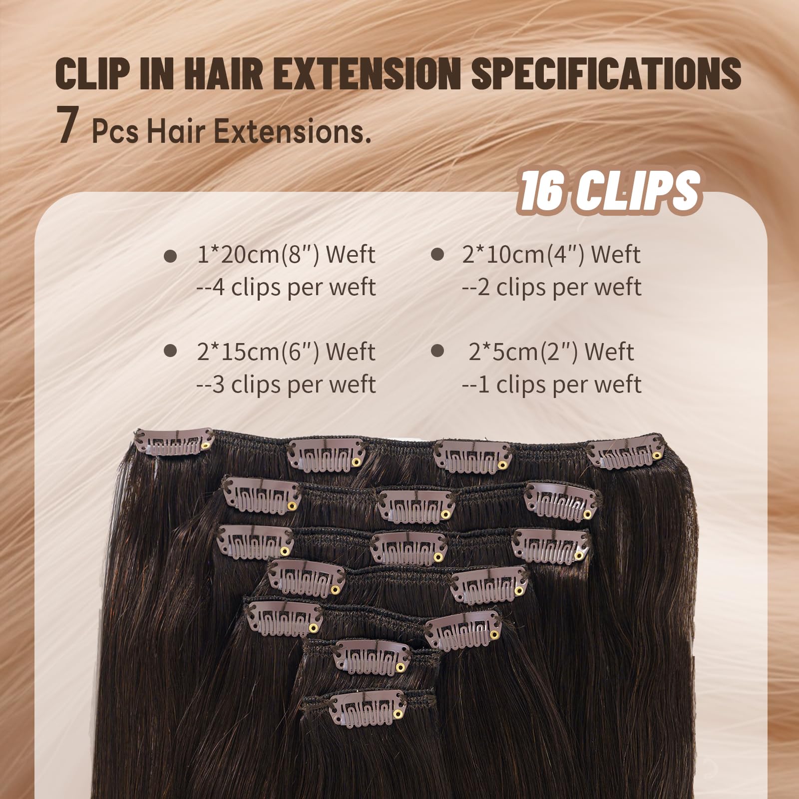 LuxeTress Clip in Hair Extensions Real Human Hair 16 Inch 120g 7Pcs Remy Extensions Double Weft Straight Hair Extensions for Add Volume (16in, 120g, #2)
