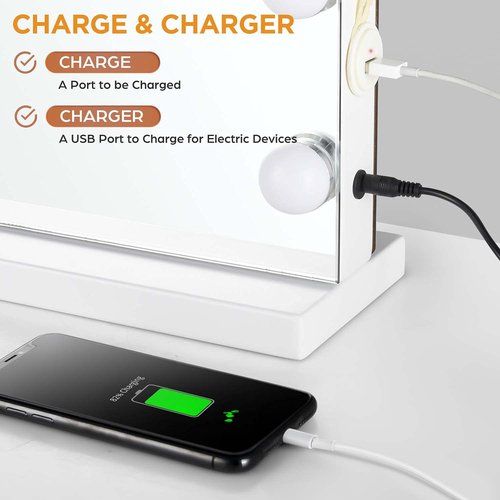 - 【Smart Touch & USB Port】Featuring intuitive touch controls that respond like magic fingertips, our lighted makeup mirror doubles as a charging hub with USB port.