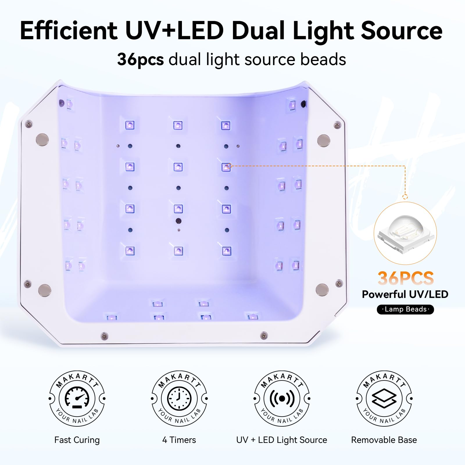 Makartt UV LED Nail Lamp: UV Light for Gel Nails Rechargeable Aurora 36W Gel Lamp with 4 Timers & Auto Sensor Professional Fast Curing Cordless Nail Light for Home Salon Manicure