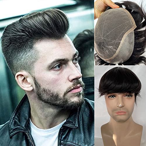 Men's Hairpiece European Human Hair Toupee 10x8inch HD Swiss Lace Super Thin Skin Back Hair Replacement Wig Natural Black Color