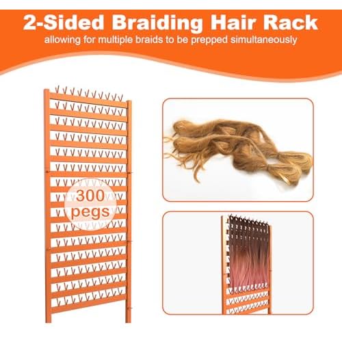 - Huge 300-Peg Capacity: Double-sided design with 300 pegs organizes countless extensions. Perfect for complex styles like Fulani braids and cornrows. Multi-layer separation keeps synthetic/human hair wefts neatly organized and accessible during styling sessions