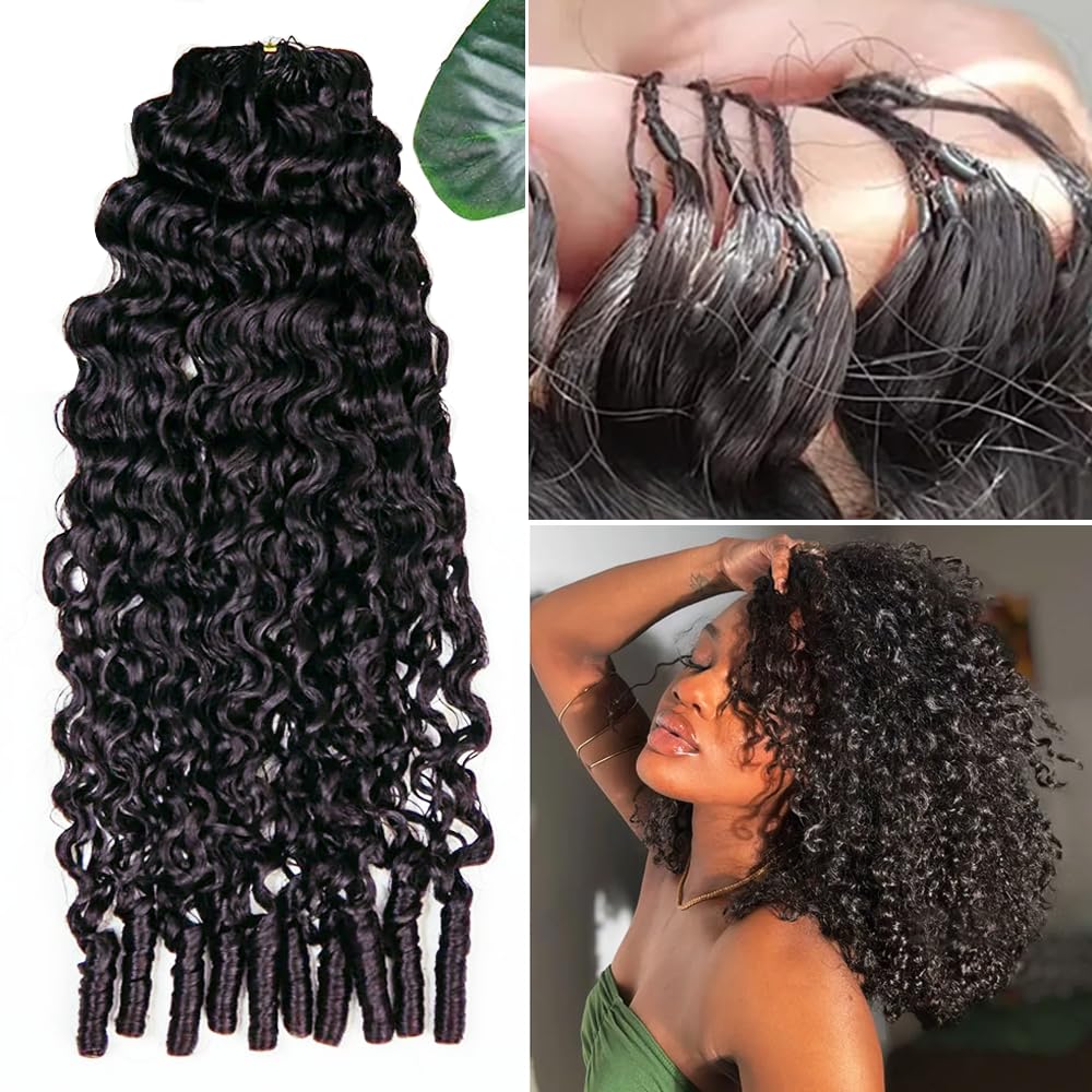 Micro Pre Looped Crochet Human Hair Extensions 14 Inch 120g Burmese Curly Human Feather-Line Invisible Crochet Hair Pre Separated Knotless Crochet Human Hair For Braiding Twist
