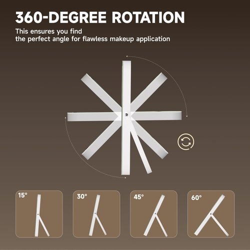 - Stable Positioning: This lighted vanity mirror can rotate smoothly, allowing effortless angle adjustment for detailed viewing. Its robust mechanism locks securely, ensuring optimal stability during use.