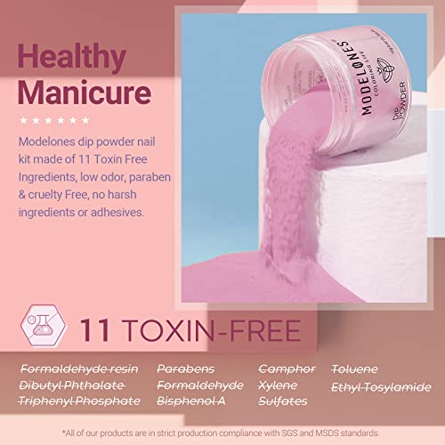 - PREMIUM QUALITY: Modelones dip powder nail kit is made with 11 ingredients, meeting U.S. standards. It has a low odor and is free of harsh chemicals. These chip-proof, smudge-proof, waterproof nails are gentle on natural nails, providing an excellent alternative to traditional nail polish. Includes detailed instructions, 18-month warranty, and friendly customer service