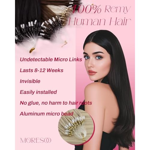 - 1.Real Human Hair: Moresoo micro loop extensions are made of real human hair, offering a natural look and seamless blend with your own hair; Tangle-free, minimal shedding, and no split ends; With Moresoo, you can enjoy the soft hair extensions