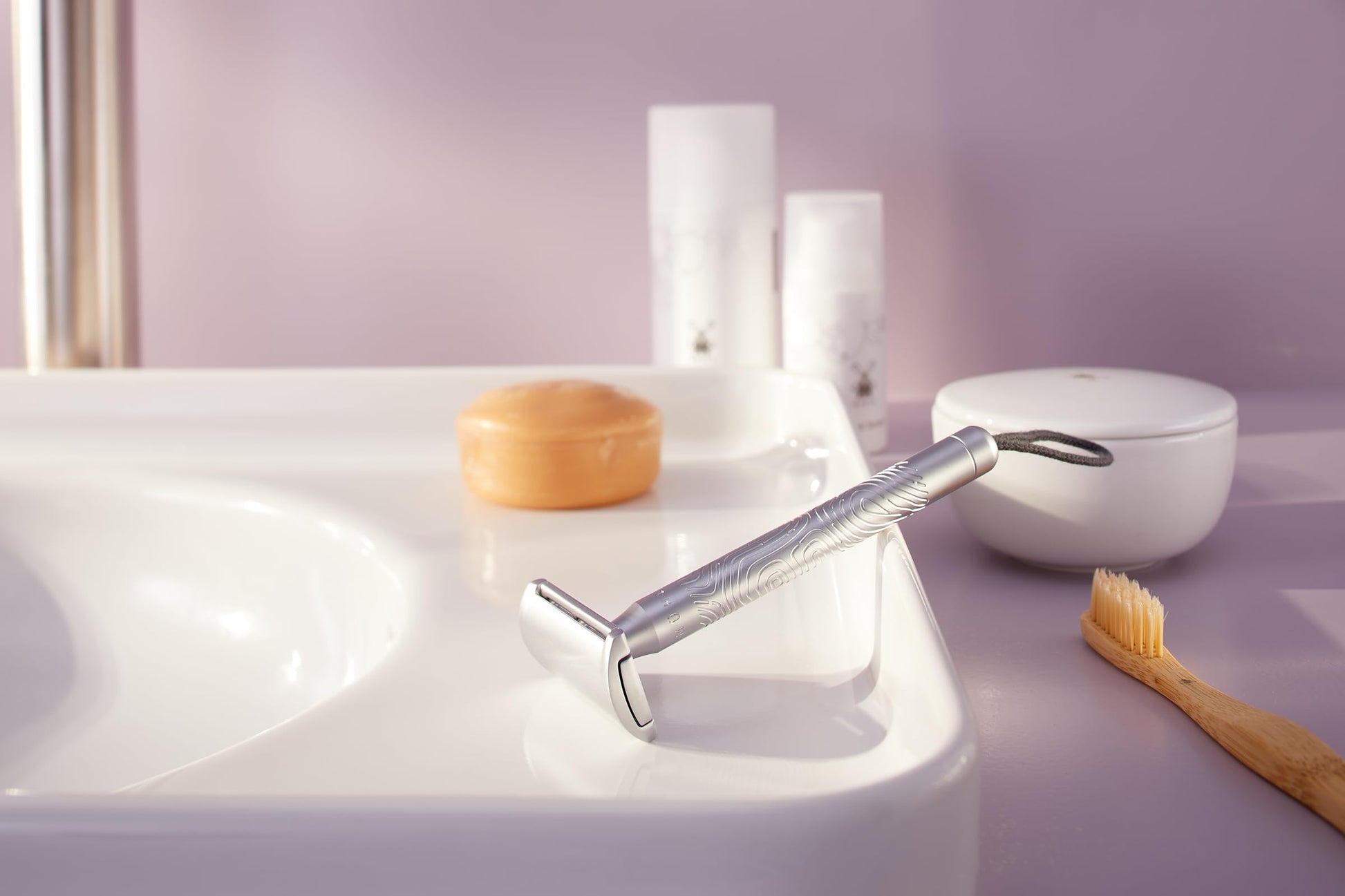 MÜHLE Companion 5-Piece Shaving Set - Unisex Safety Razor with Grey Cord, Blade, Cream, Cloth - Vegan, Sustainable