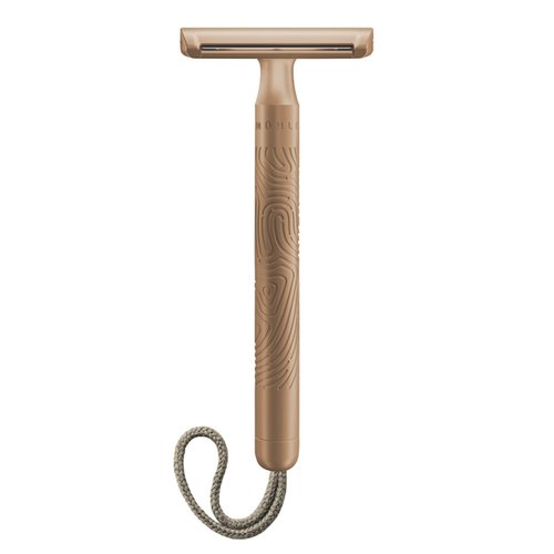 Details: The rose gold coating of the metal razor gives it a special, elegant look. The practical, replaceable cotton cord at the end of the handle comes in a warm, sand-coloured beige hue in the new COMPANION version. As the first unisex, DE razor the COMPANION features a considered design that responds to the needs of this audience, namely it is: Gentle with increased protection to avoid scratches and nicks Easy to use and ideal for beginners Designed with diversity in mind, suitable for use on the body and face Customizable and personal GENTLE SHAVING EXPERIENCE When designing the razor, we particularly focused on protective features, allowing for more safety in avoiding scratches or nicks than other DE razors. The COMPANION features rails on both sides of the top plate enabling the user to find the perfect angle for shaving (30°-50°). If the angle is too small or too large the rail will adjust the distance between blade and skin. Blade exposure is also kept at a minimum level to allow for a smooth yet gentle shave. Furthermore, the head features protective flaps over the blunt sides of the blade to avoid unintentionally scratching or nicking of the skin when shaving the body. EASY TO USE With a shave that feels incredibly gentle, the customer can easily build up confidence with DE shaving making it ideal for beginners. DESIGNED WITH DIVERSITY IN MIND With a longer handle, The COMPANION is ideal for shaving legs, head, neck, and shoulders. The fingerprint design provides a good grip and contributes to the ‘companion concept’: something that is individual, personal, and intimate- a good friend. DIMENSIONS Width: 49 mm Length: 112 mm Weight: 88 g
