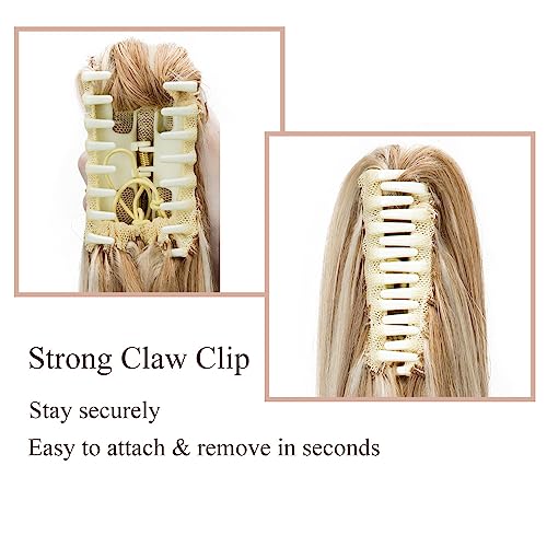 MY-LADY Ponytail Extension Human Hair Claw Clip in Ponytail Hair Extension Long Straight Pony Tail Hair Extensions Real Human Hair for Women Golden Brown & Bleach Blonde 16 Inch 105g