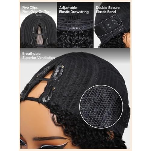 Nadula EasiContour V Part Yaki Straight Human Hair No Leave Out Clip in V-part Wig,12A Glueless Upgrade U Part Light Kinky Straight Human Hair Wig 180% Density with Elastic Drawstring 14inch