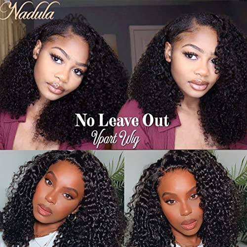 Nadula V Part Wig Kinky Curly Human Hair No Leave Out Glueless Upgraded U Part Wigs for Women,10A Malaysian Afro Curly V-part Wigs V Shape Clip in Half Wig Beginner Friendly 150% Density 14inch