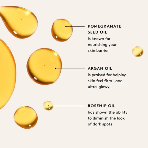 - KEY INGREDIENTS: Potent botanicals known for visible results: Argan Oil for a supple feel, Pomegranate Seed Oil for deep nourishment, and Sea Buckthorn Oil for a dewy glow.