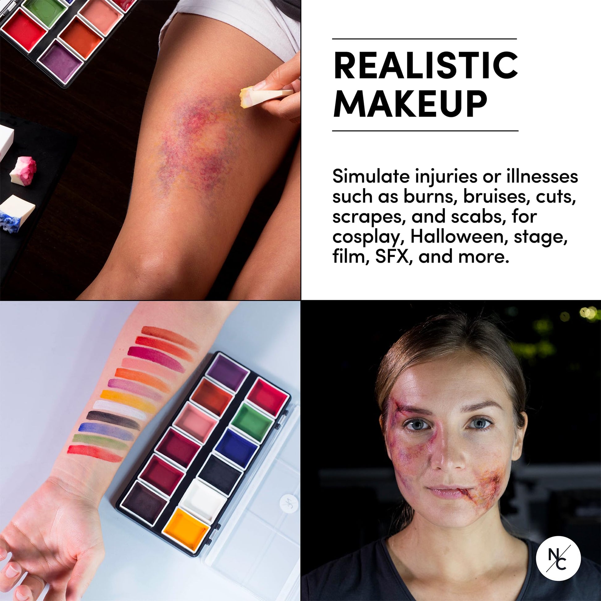 - REALISTIC MAKEUP: Simulate injuries and illnesses including burns, bruises, cuts, scrapes, and scabs for cosplay, Halloween, stage, film, SFX, and other performance arts.