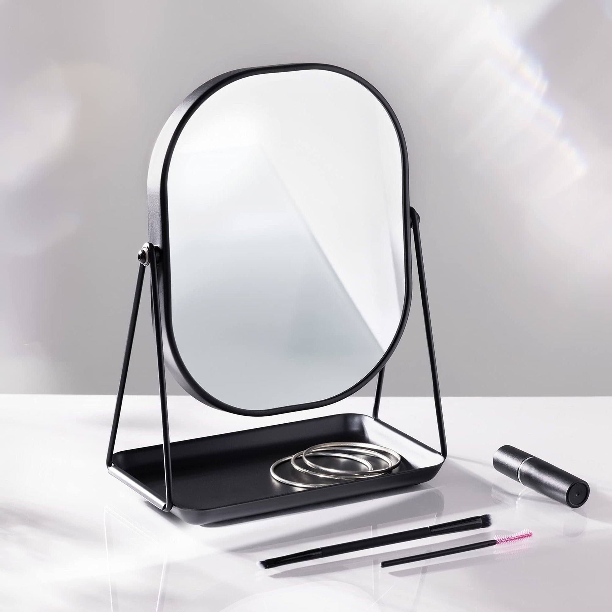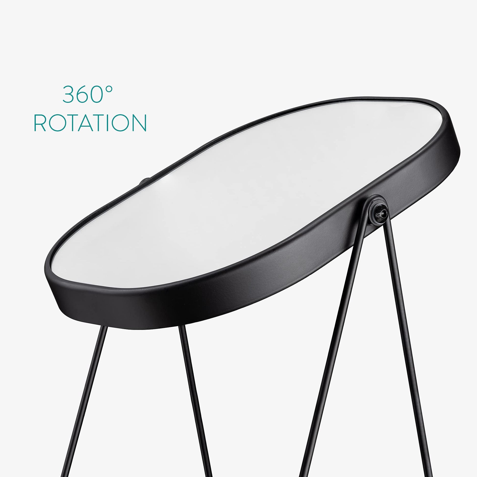 - 360° ROTATION: This beauty accessory can be swiveled so that you can change the angle of the mirror. Style yourself from every optimal viewing angle with the fully-rotating, one sided mirror panel.