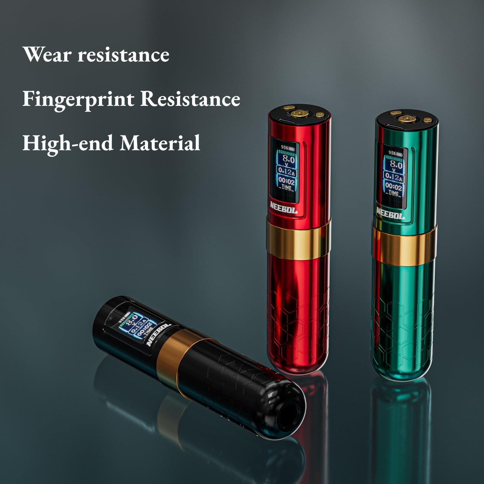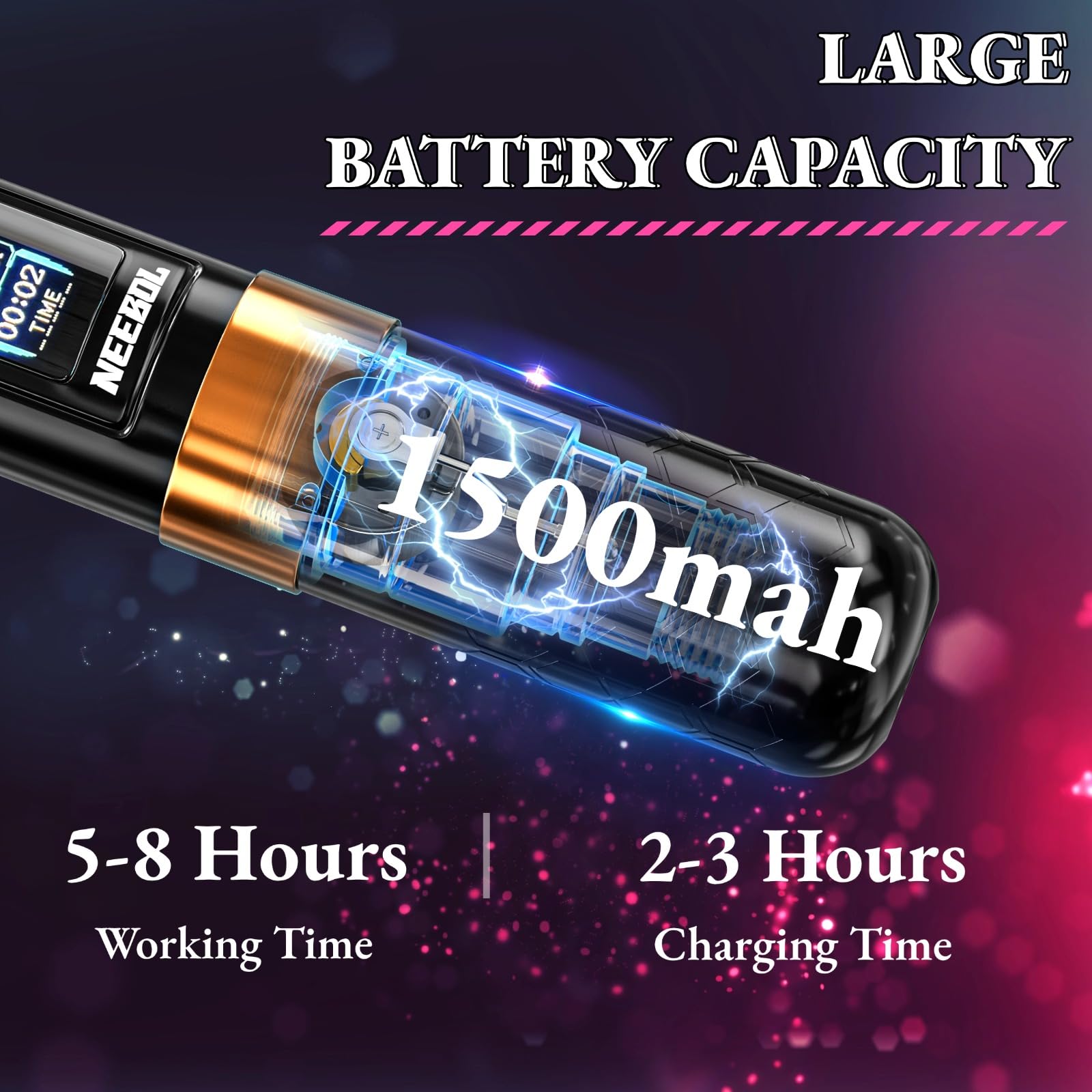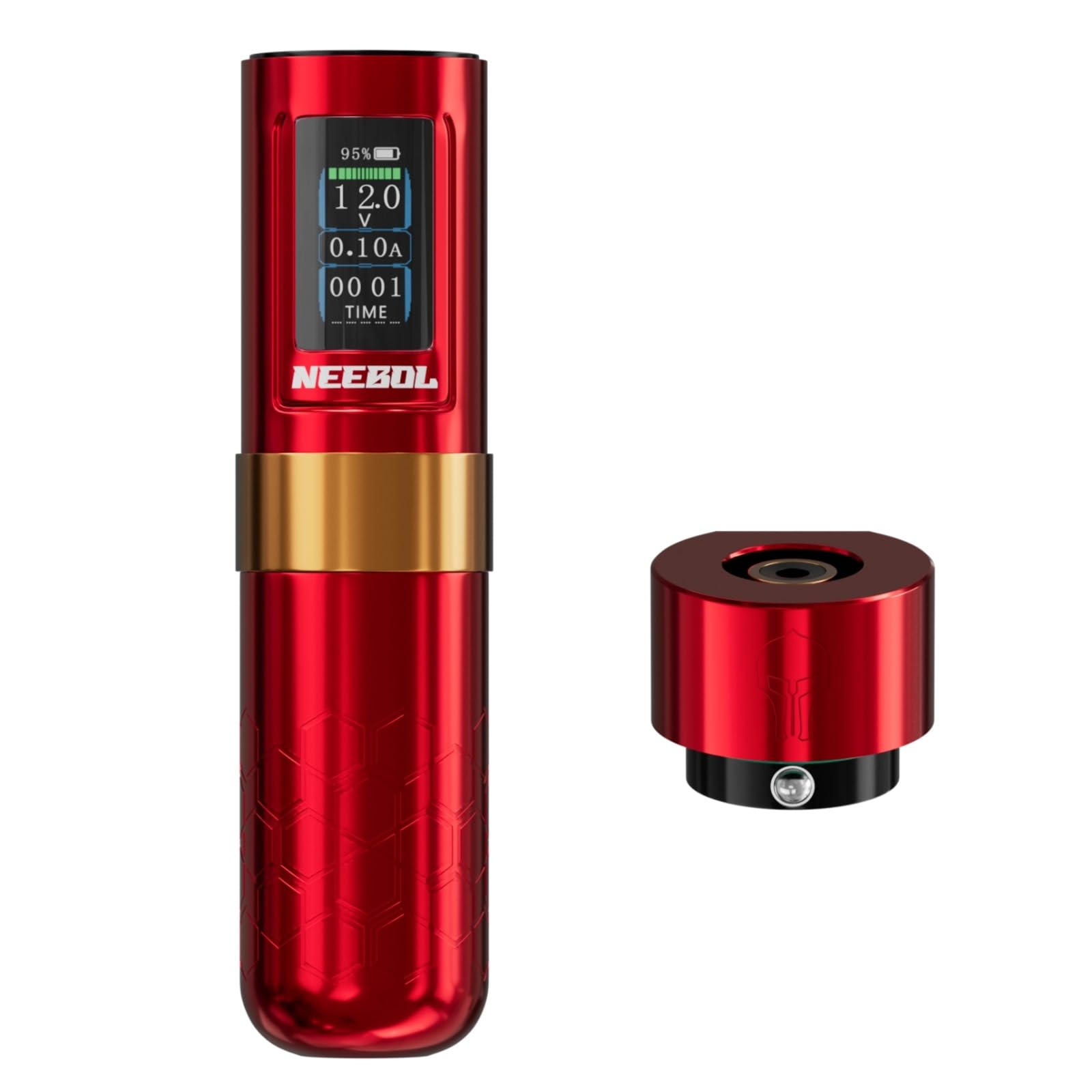 NEEBOL Wireless Tattoo Gun Rotary Tattoo Machine LED Display Screen 8 Hour Battery Life Extra Battery Permanent Tattoo Art High-end Tattoo Pen Equipment Supply Makeup Gift (Red)