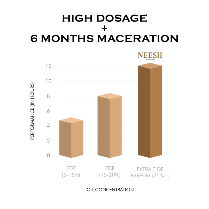 - Blended in “Extrait De Parfum” concentration for day-long lingering effect