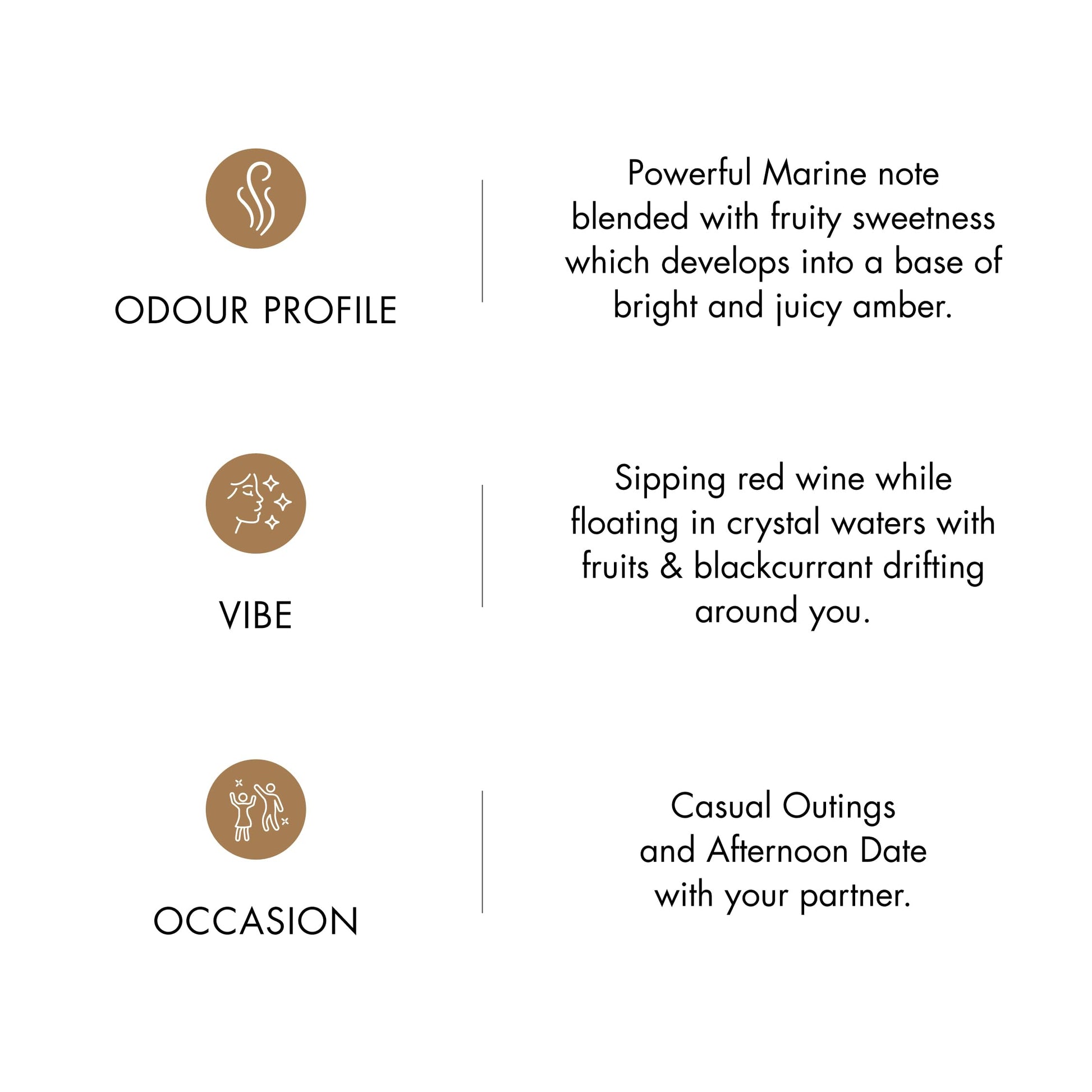 Details: Glazed Water is a fragrance inspired by memories of the Mediterranean Sea, characterized by a juicy aqua accord that is bright and playful. It captures the essence of twilight by the sea with wine, succulent berries, and melodious music. The fragrance develops with fresh notes of blackcurrant, jasmine, and cardamom, creating an alluring and unforgettable scent. It has a lasting and memorable base of natural sandalwood, amber, white musk, and unique aroma captives, ensuring it lingers gracefully, like an enduring memory.