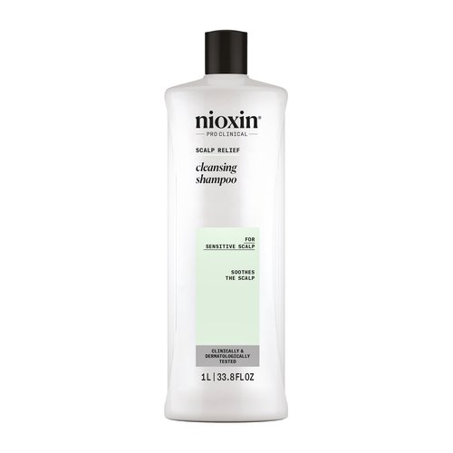 NIOXIN SCALP RELIEF CLEANSER SHAMPOO. Cleanses gently yet effectively while soothing the scalp immediately. Formulated without parabens, sulfates and colorants. With Aloe Vera, a scalp neutral pH, and a clean label fragrance.