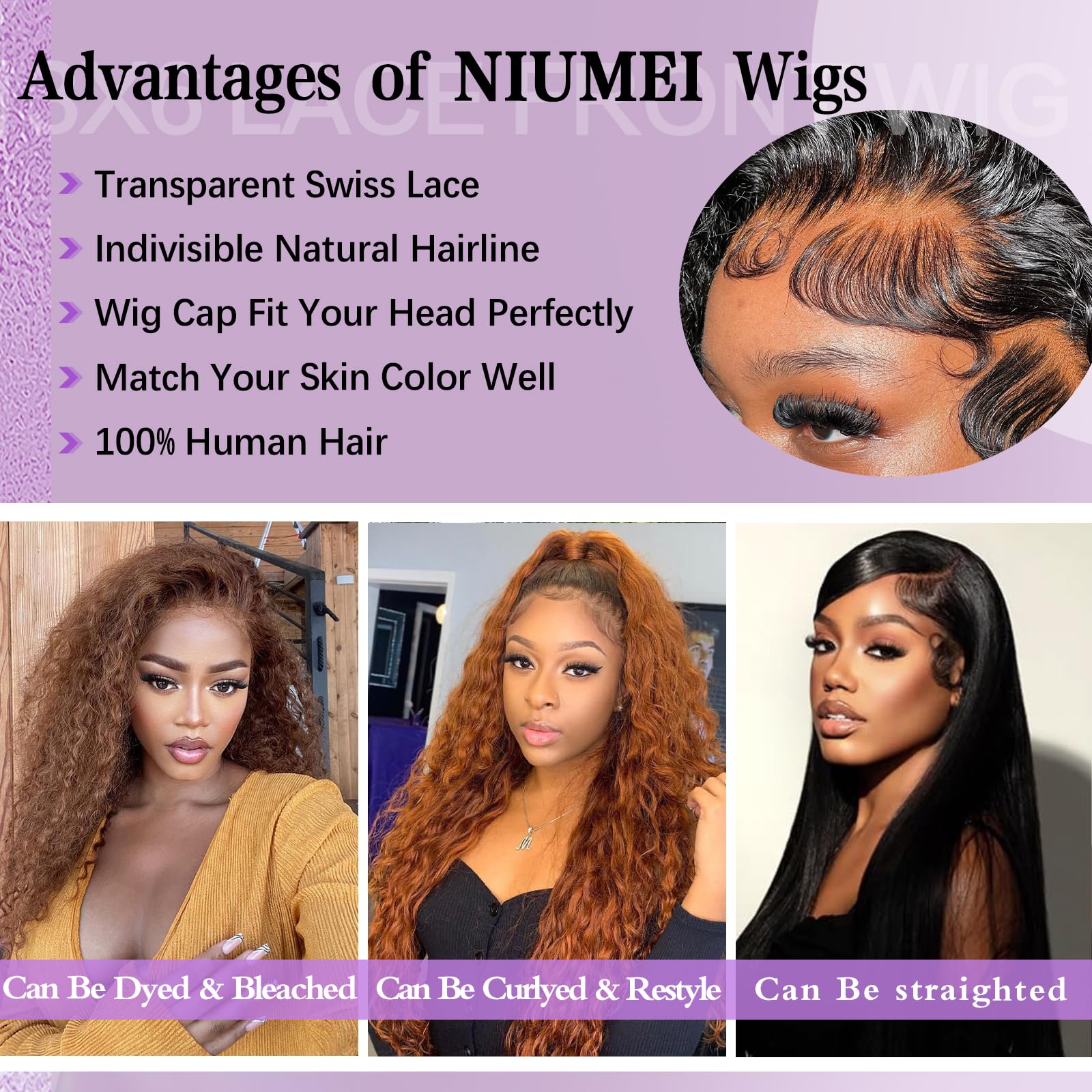Niu Mei 30 Inch Deep Wave Lace Front Wigs Human Hair 210 density 13x6 HD Transparent Lace Front Wigs Human Hair Glueless Wigs Human Hair Pre Plucked Deep Curly Human Hair Wig for Women