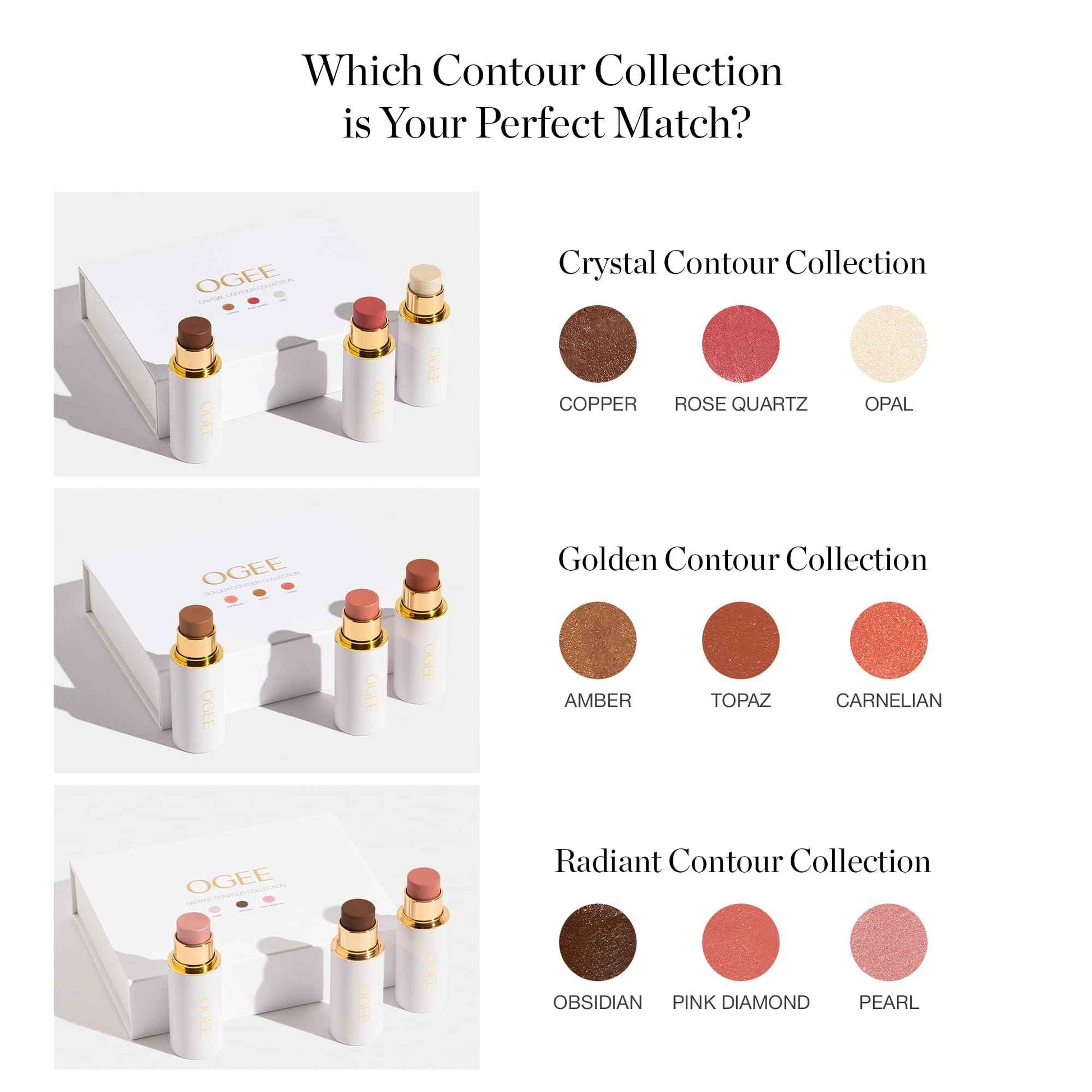 - ENHANCE YOUR GLOW: Achieve a natural, no-makeup look with Ogee Face Stick Trio, a versatile contour makeup collection that nourishes your skin while enhancing your features.