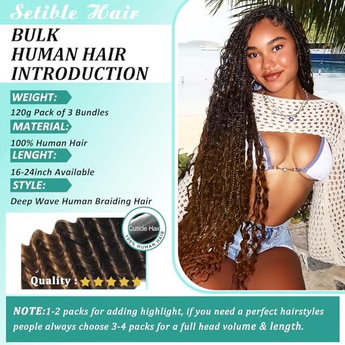 - More Thoughtful Design: Human hair for boho braids using pure plant dyeing, chemical-free & odorless, you can rest assured to use it. Human hair braiding hair come with 3 bundles per pack, which is more easy use than 2 bundles. Deep wave boho human hair is 120g per pack (1 pack = 120g = 3 bundles). Achieve fuller, longer-lasting styles with just 2-3 packs.