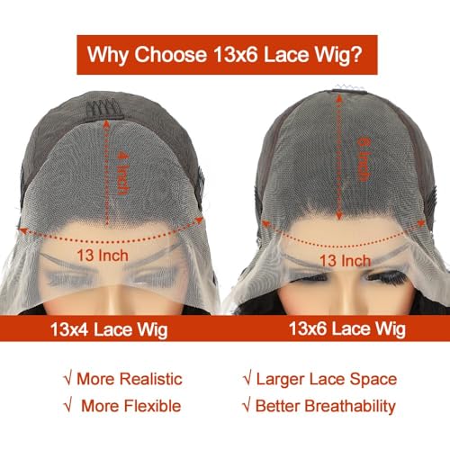 - 13X6 HD Lace Front Wigs Human Hair : Upgaded 13x6 Lace Frontal Large Parting Space, Can Be Parted Anywhere,Transparent Swiss HD Lace Melts Well,Undetectable Invisible Lace, Realistic Look,Pre-plucked Natural & Clean Hairline Easy to Work With & Low Maintenance