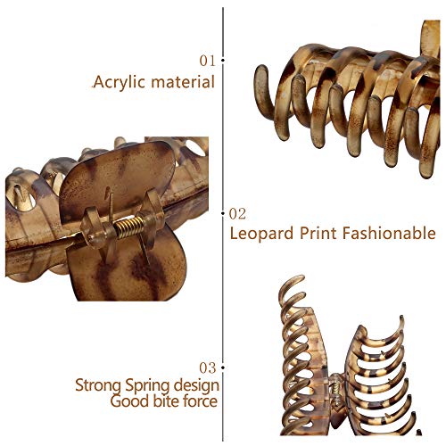 OWIIZI Large Hair Claw Clips for Women 4.3" Matte Leopard Jumbo Hair Clips Non-Slip Ponytail Barrette Strong Hold Claw Clips for Girls Long Thick Hair (4Packs)