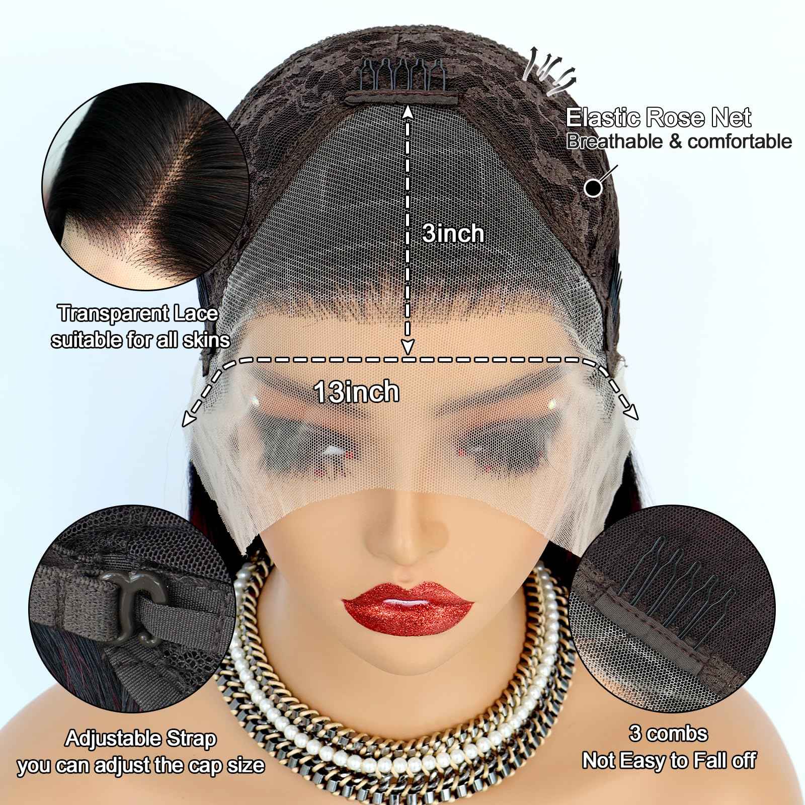 - 【Adjustable wig cap】The average size of this wigs (21.5 inches to 23 inches). There are two elastic bands on the hat, which you can adjust according to your head. A breathable and elastic rose net hat makes you feel comfortable when you wear it. Easy to install and remove, saving you more time.