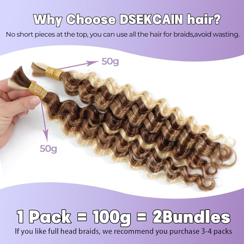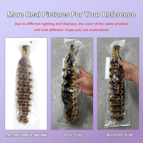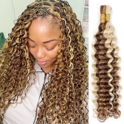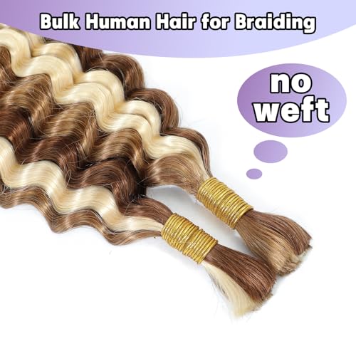 P27/30/613 Human Braiding Hair for Boho Braids Highlight Brown Blonde Deep Wave Bulk Human Hair for Braiding Crochet Curly Braiding Human Hair Knotless Bohemian Braids100g (2 of 50g) 18 Inch