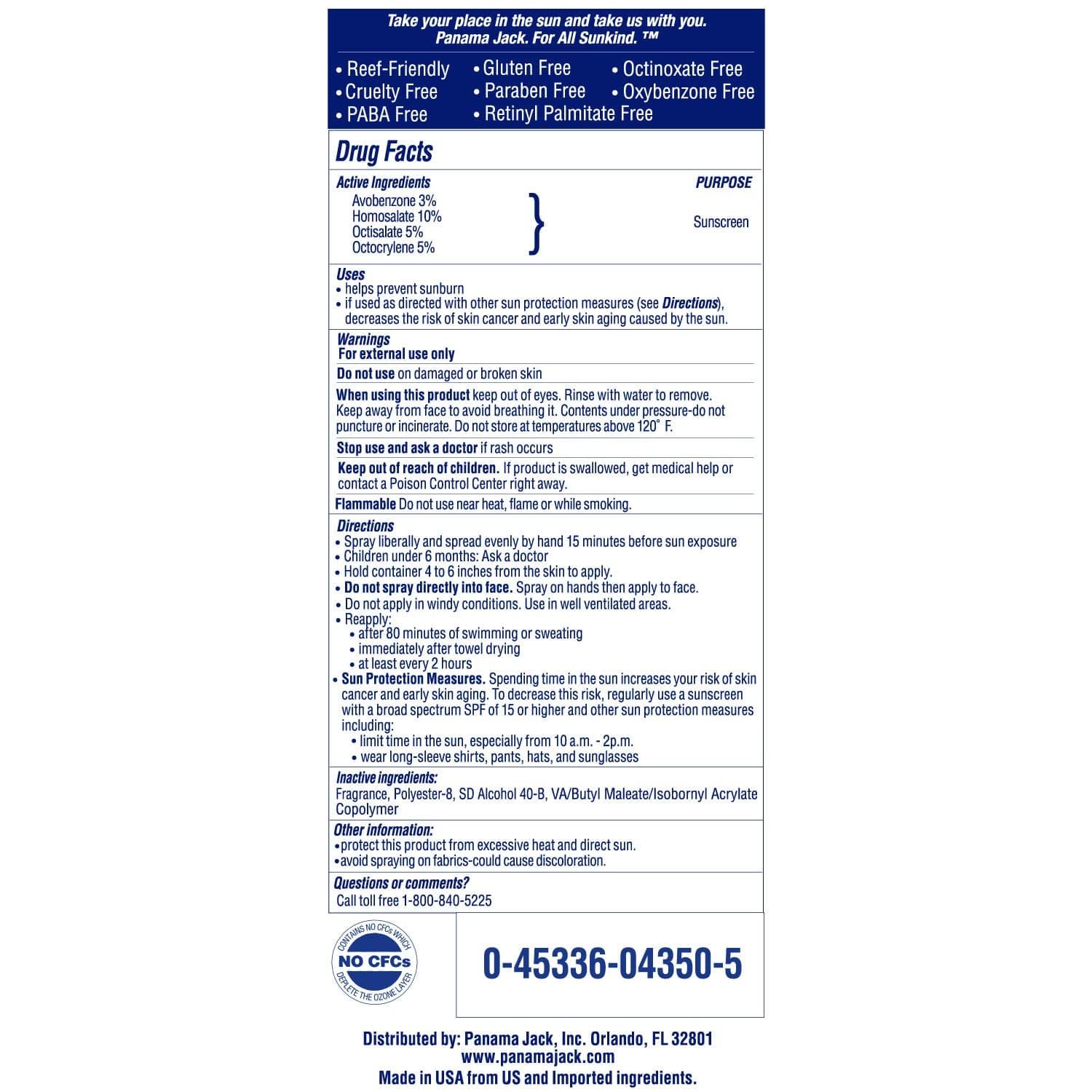 - Made for sensitive skin, our Panama Jack Kids continuous sunscreen spray SPF 50 is hypoallergenic, oxybenzone and octinoxate free and provides broad spectrum UVA/UVB protection in a non-greasy, gentle touch formula