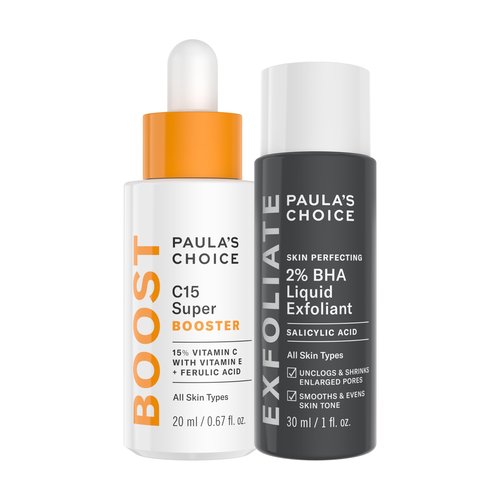 Paula’s Choice C15 Super Booster Vitamin C Serum + Travel Size 2% BHA Salicylic Acid Liquid Exfoliant Duo, for Radiance, Glow and Smoother Skin, Set of 2