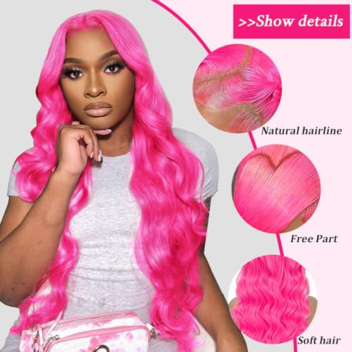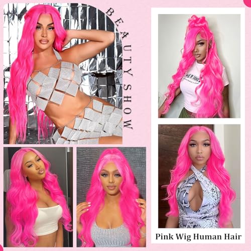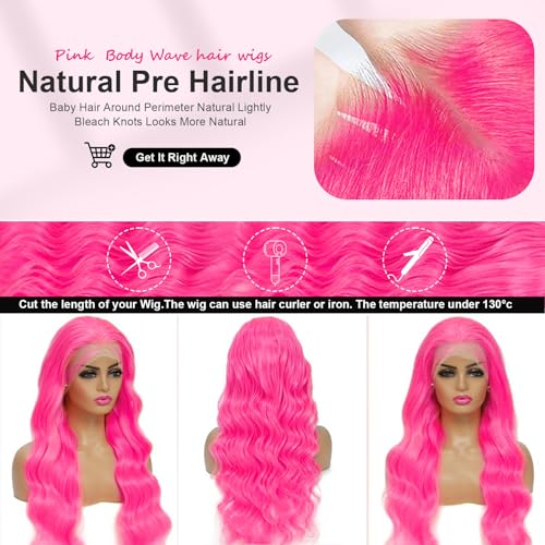 Pink Wig Human Hair 13x4 Pink Lace Front Wigs Human Hair Pre Plucked Body Wave Wig 200 Density Real Hair Frontal Wigs for Women 24 Inch