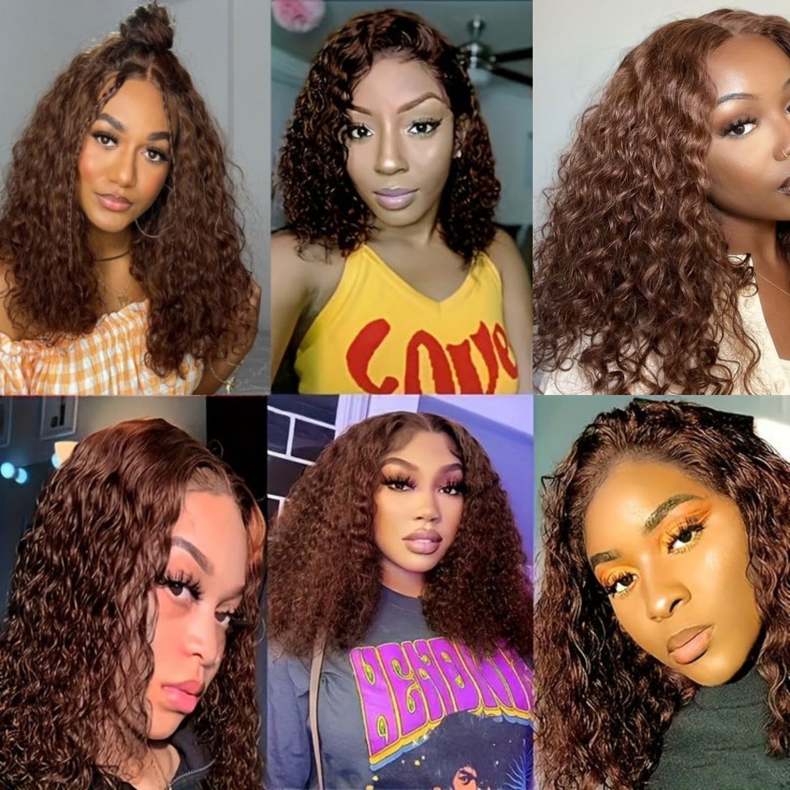 - Pre Cut Lace Wig: Chocolate Brown curly 4x4 lace closure wigs use invisible hd lace. Entirely handmade, blends perfectly into skin. Pre cut by the special technical scissor to make sure the edge is stronger and neater