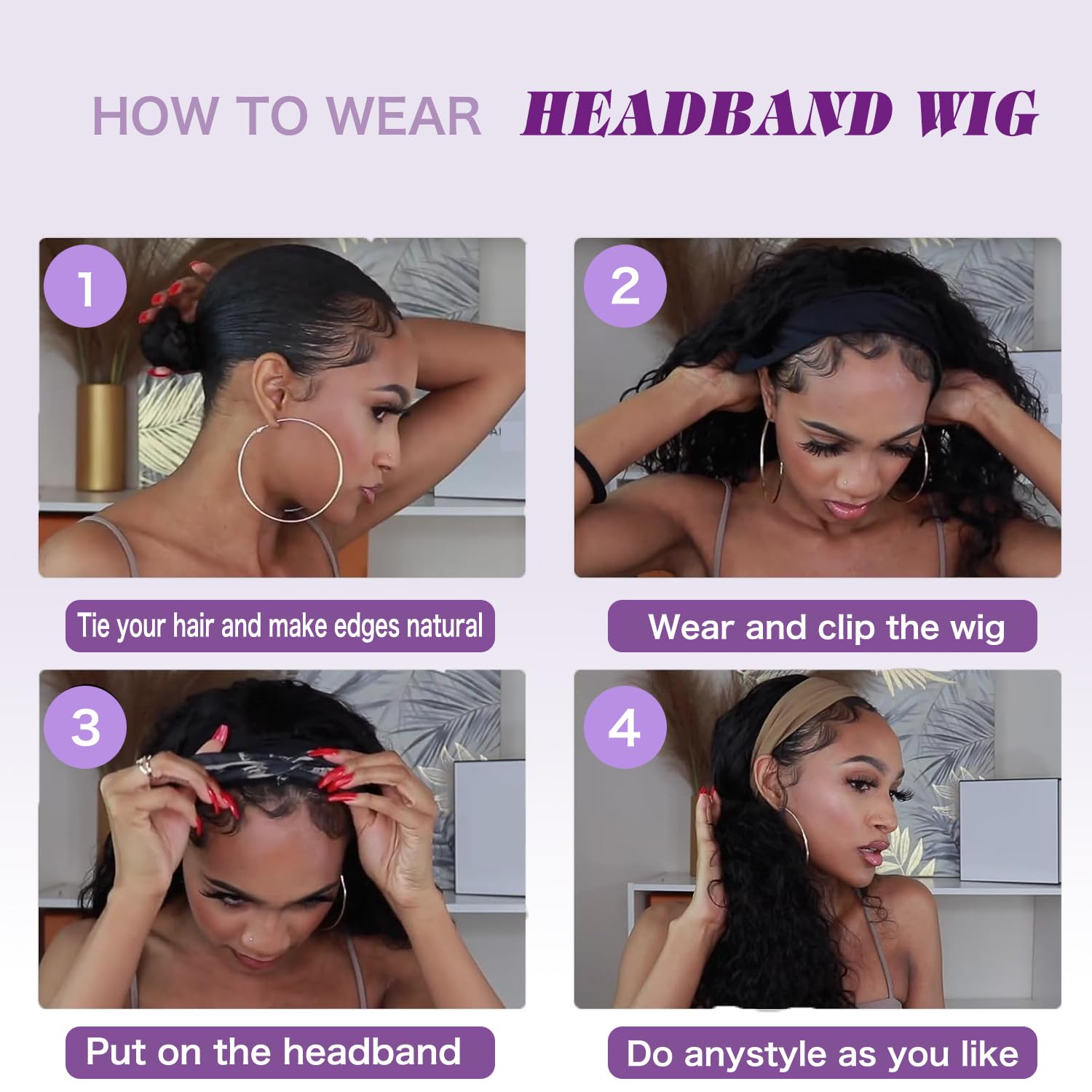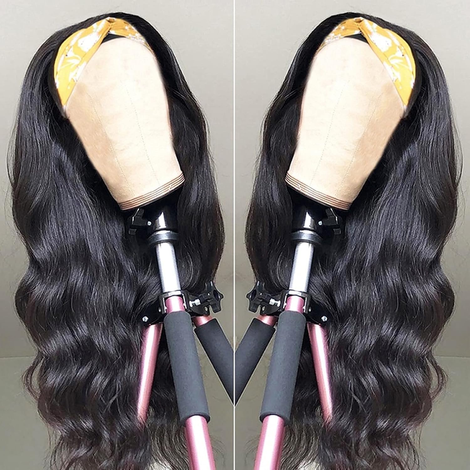 Prisyfab Body Wave Headband Wig Headband Wigs for Black Women Human Hair Glueless Wear and Go Glueless 100% Brazilian Virgin Human Hair Headband Wig 150% Density (24inch)