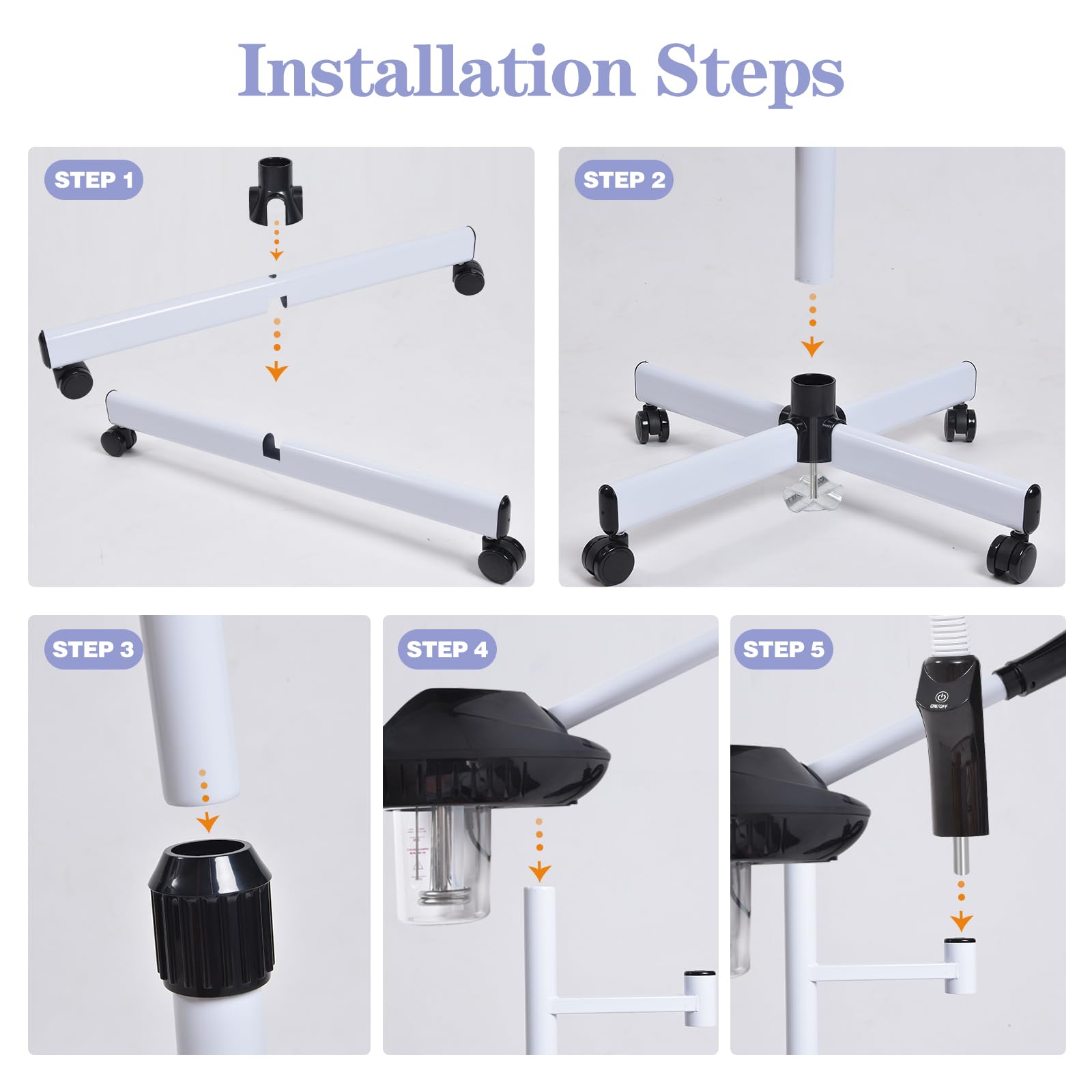 - 【Facial Steamer Professional】The facial steamer comes with an upgraded atomizing cartridge, removable 500 ML water cup, 36-52 inch adjustable height, 360° rotating nozzle, and 360° rotating body.