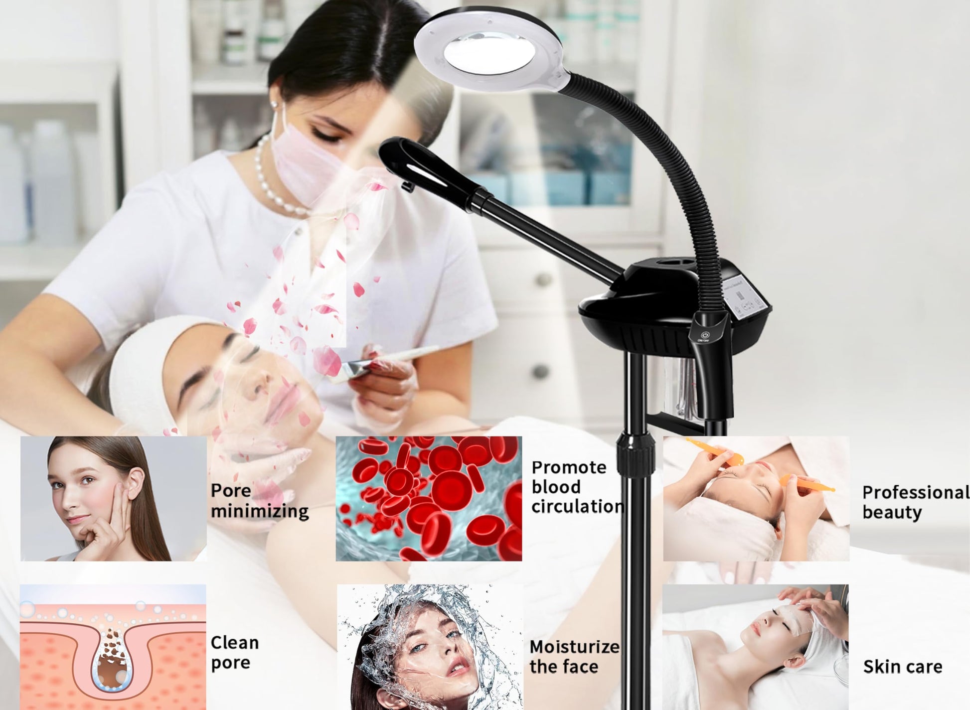 - 5X Magnifying Lamp Facial Steamer: This facial steamer with 5X magnifying Lamp and LED light is designed with innovative structure, timer can be set at 5-30 minutes. Tips: the best steaming time is 15-20 minutes