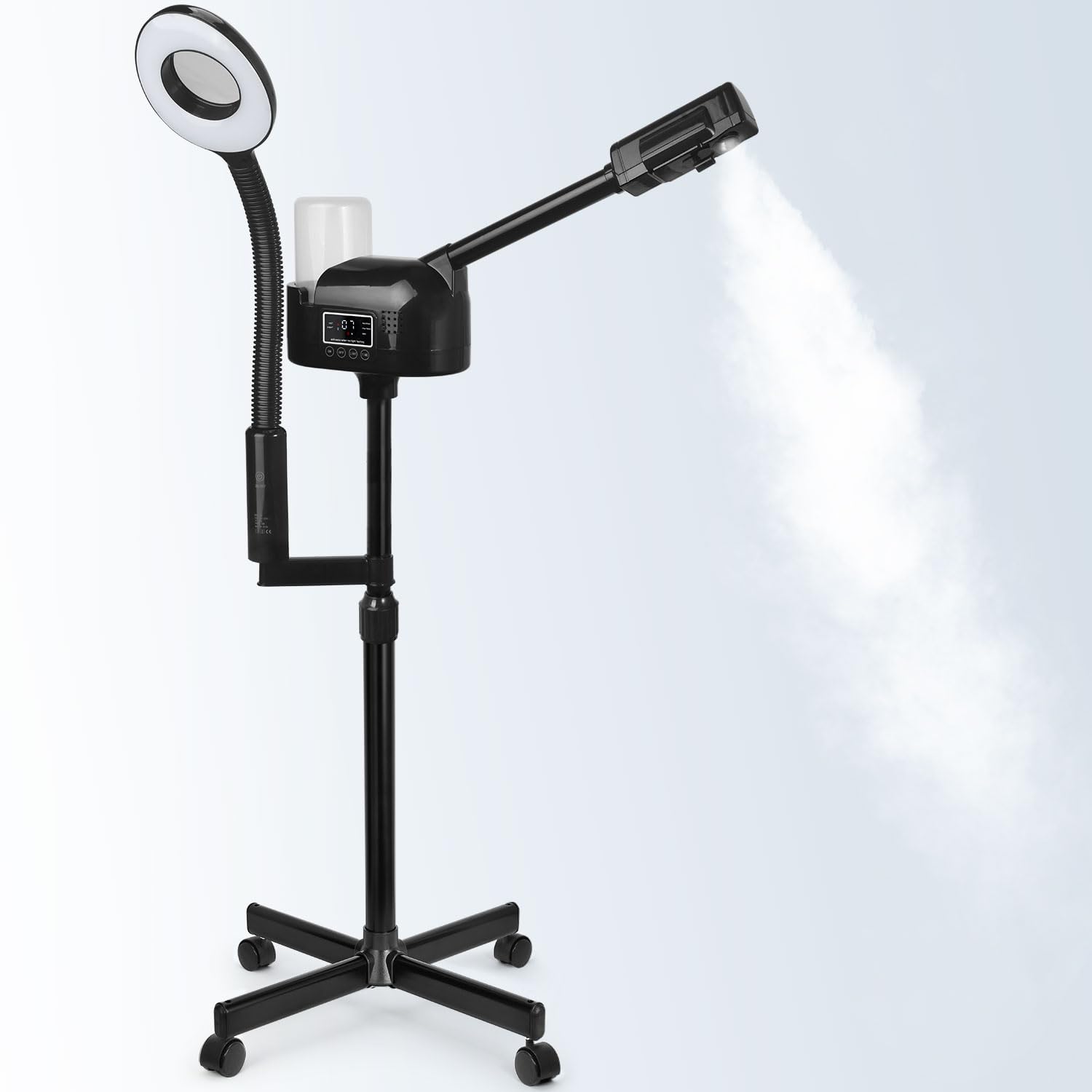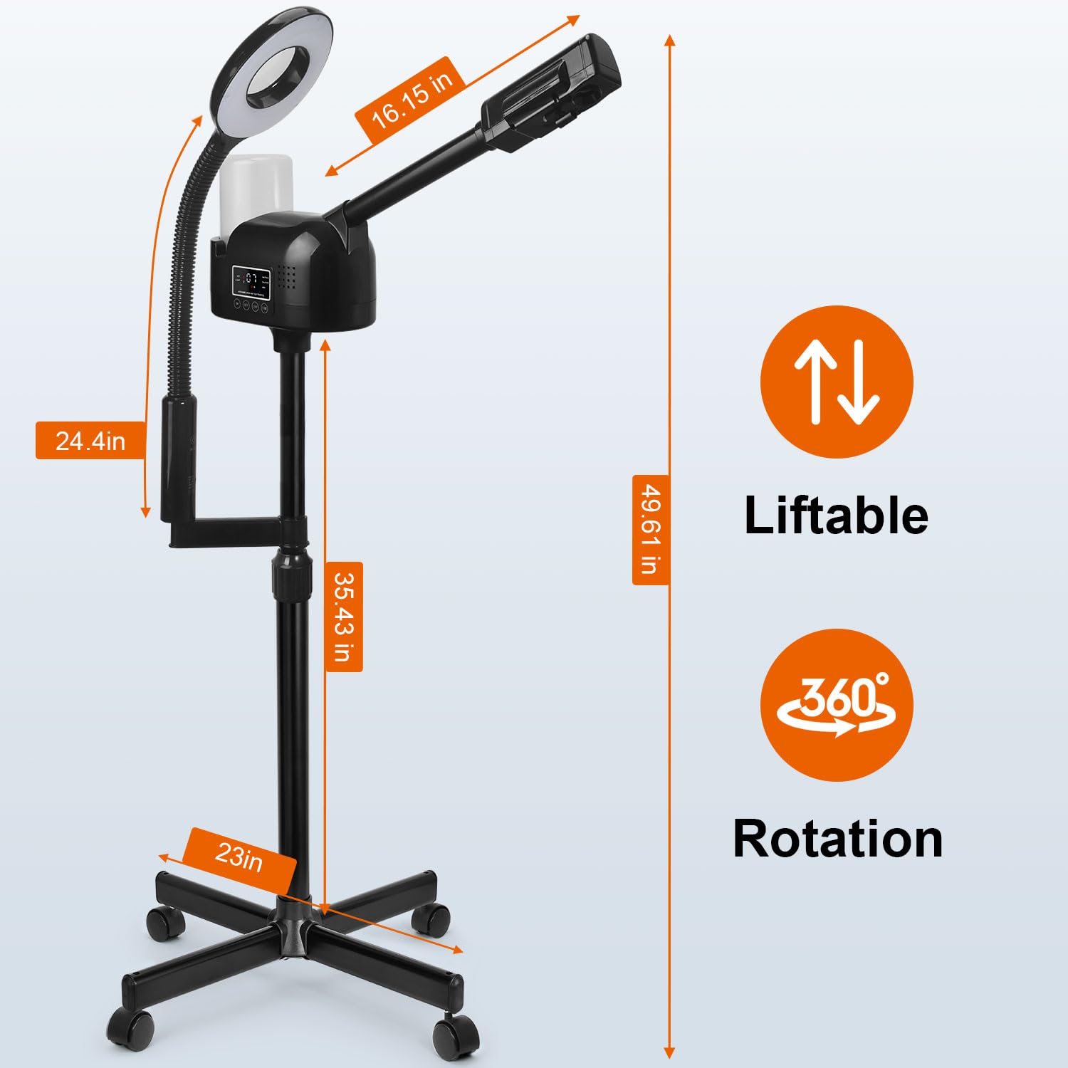 - ✨️【Easy to Use】The steam machine for face has the Digital LCD Screen,easy to operate,Hot Mist function, timing function, water volume reminder function, it is a professional facial steamer for salon spa. Adjustable height retractable lift rod and universal rolling wheels meet your different needs.