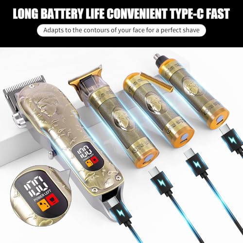 - Shaving and Grooming Set: This set includes a professional-grade LED digital display men's hair clipper, a T-shaped sideburn trimmer, an easy-to-carry electric shaver and a nose hair trimmer. 10 different sizes of hair clipper limiter combs for precise trimming of hair, beard.
