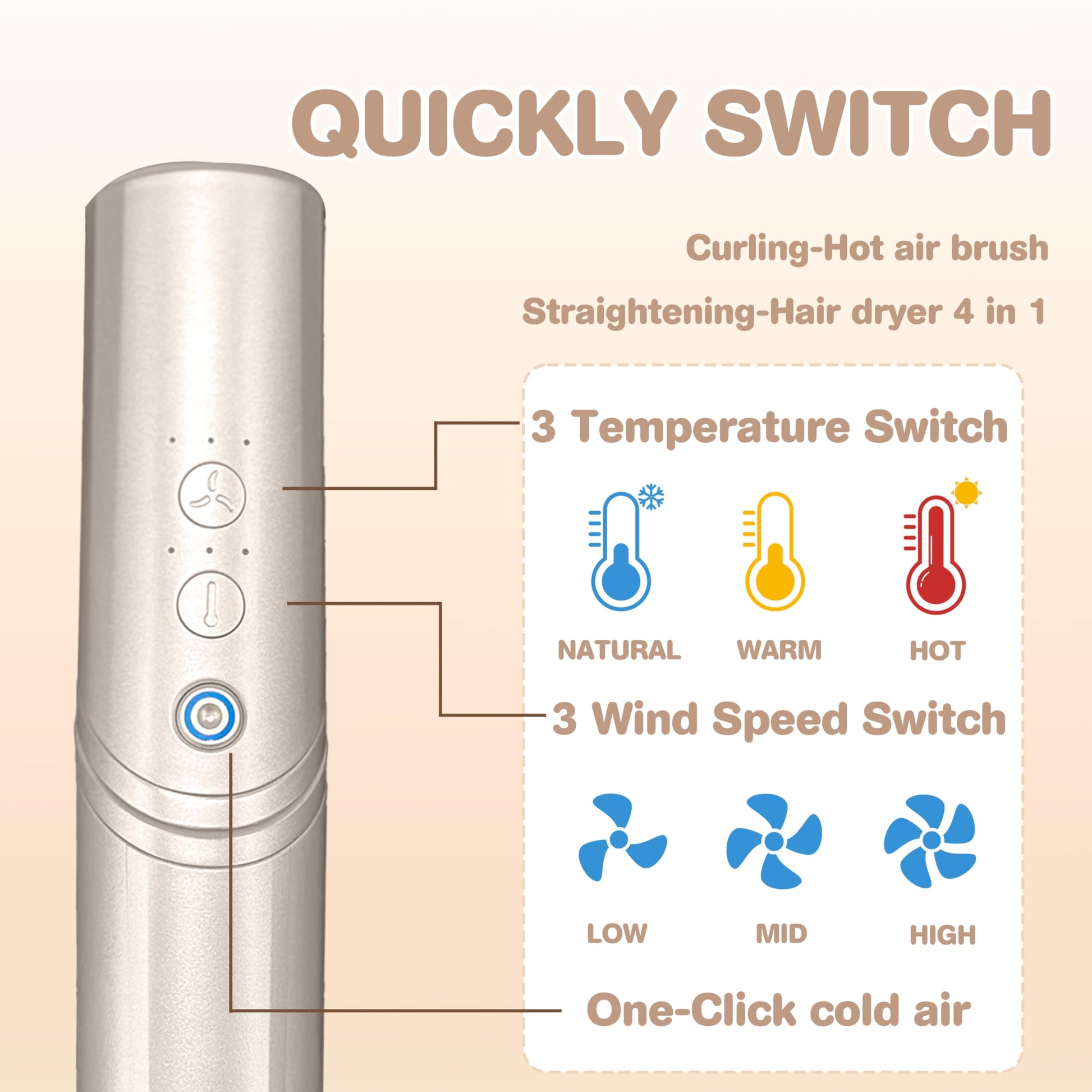 - 3 Temperature and Wind Speed Settings: This brush hair dryer has 3 heat settings (Cold-Warm-Hot) and 3 wind speed adjustments (Low-Medium-High), which can be manually adjusted according to your preference. Additionally, the cool shot function allows the hair dryer to blow high-speed cool air just in one second. This means that you can quickly and effectively blow dry your hair without causing any damage. Provides a comfortable temperature for your hair, ensuring your hair is always comfortable and protected from heat damage