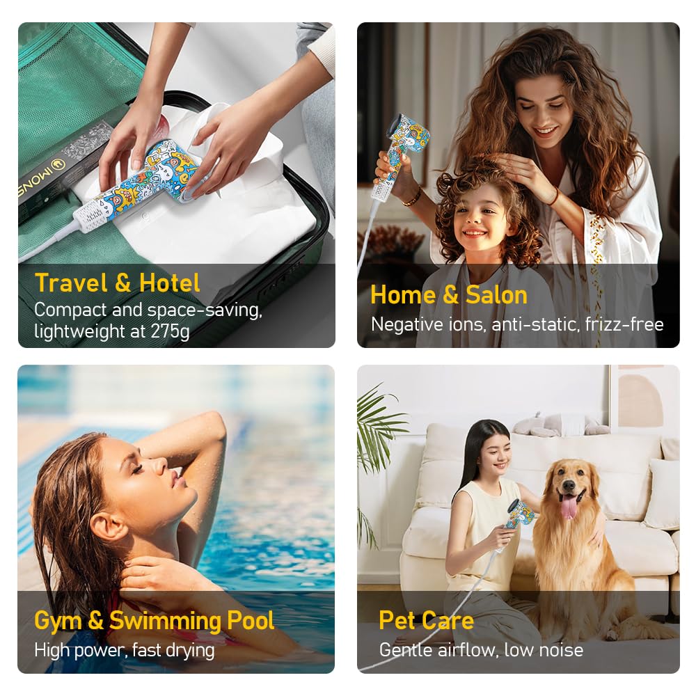 - 【Cool Graffiti Style, Unique Gifts For Women/Men】: DFYAN hair dryer adopts a unique hand-painted graffiti style pattern, vivid and creative. The pattern covers the entire body of the hair dryer, highlighting your individuality, Shows a combination of artistry and creativity, They will be surprised and love the present best.