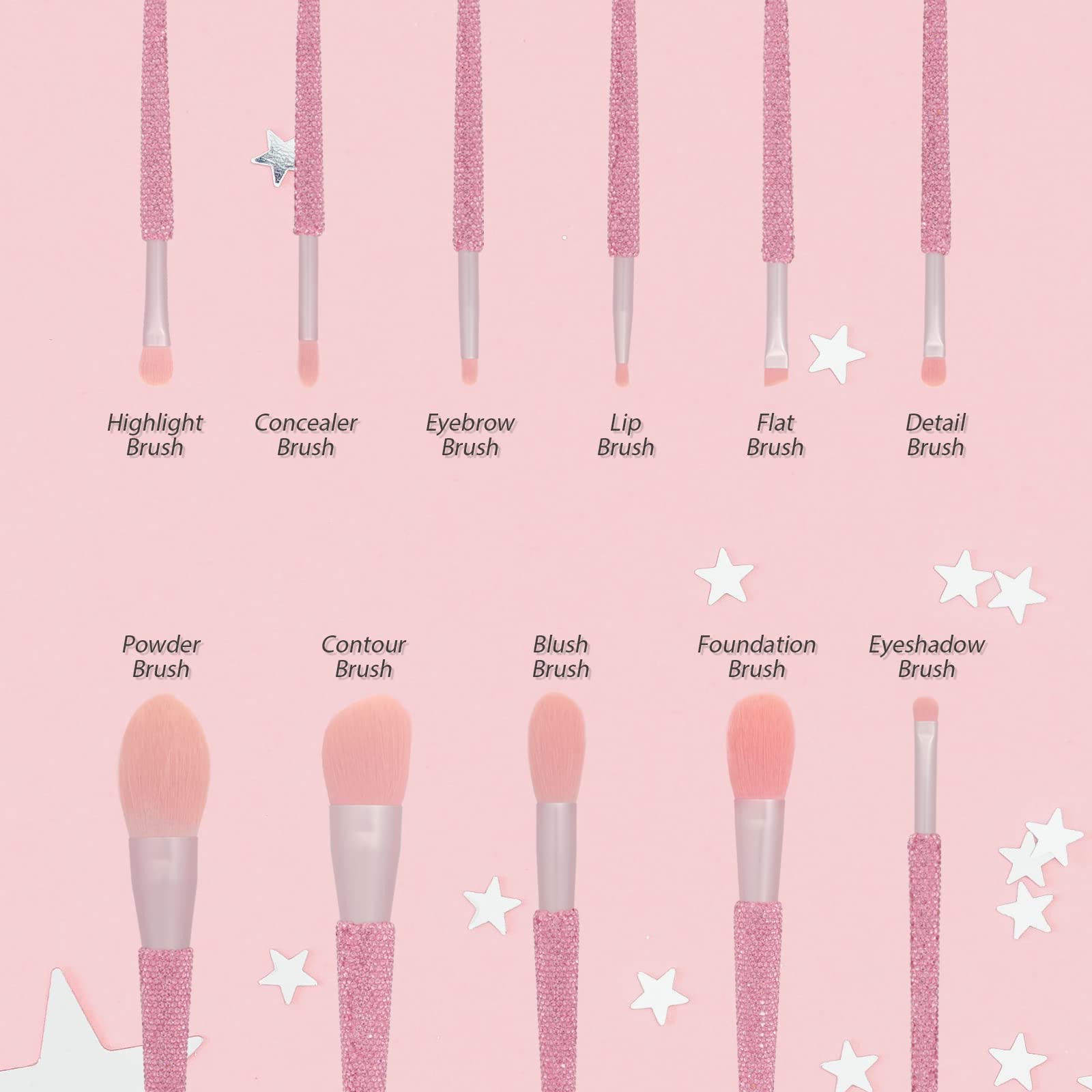 Professional Makeup Brushes Set 11PCS Bling Rhinestone Face Cosmetics Blending Liquid Foundation Powder Concealer Eye Shadows Make Up Beauty Tool Glitter (Pink)