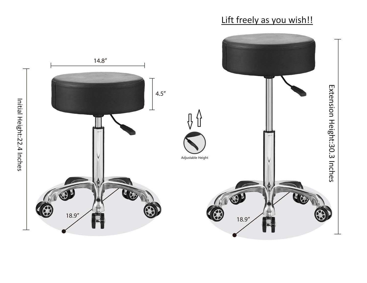 - Easy operation:You can easily adjust the seat height by hand lever,height range from 22.4 inches to 30.3 inches,meet varying heights and applications.Makes it easier to get through a busy day, very convenient for multi-tasking work.