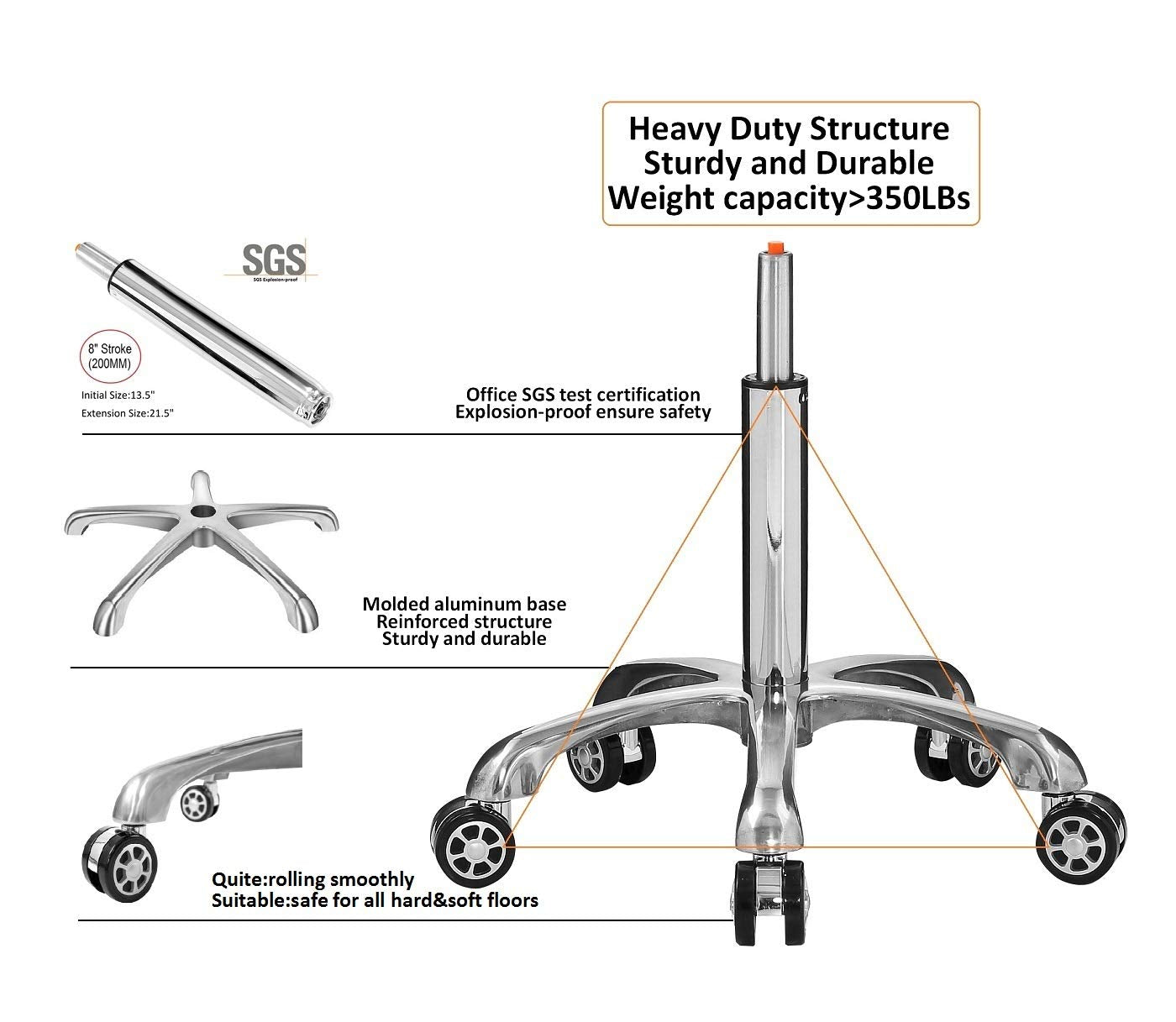 - Safety security:The heavy duty stool is well constructed,very sturdy and durable.Weight capacity more than 350LBs.Combined with the gas lift cylinder that meets the SGS test standard, and the explosion-proof iron plate as double protection,you can use it with security.