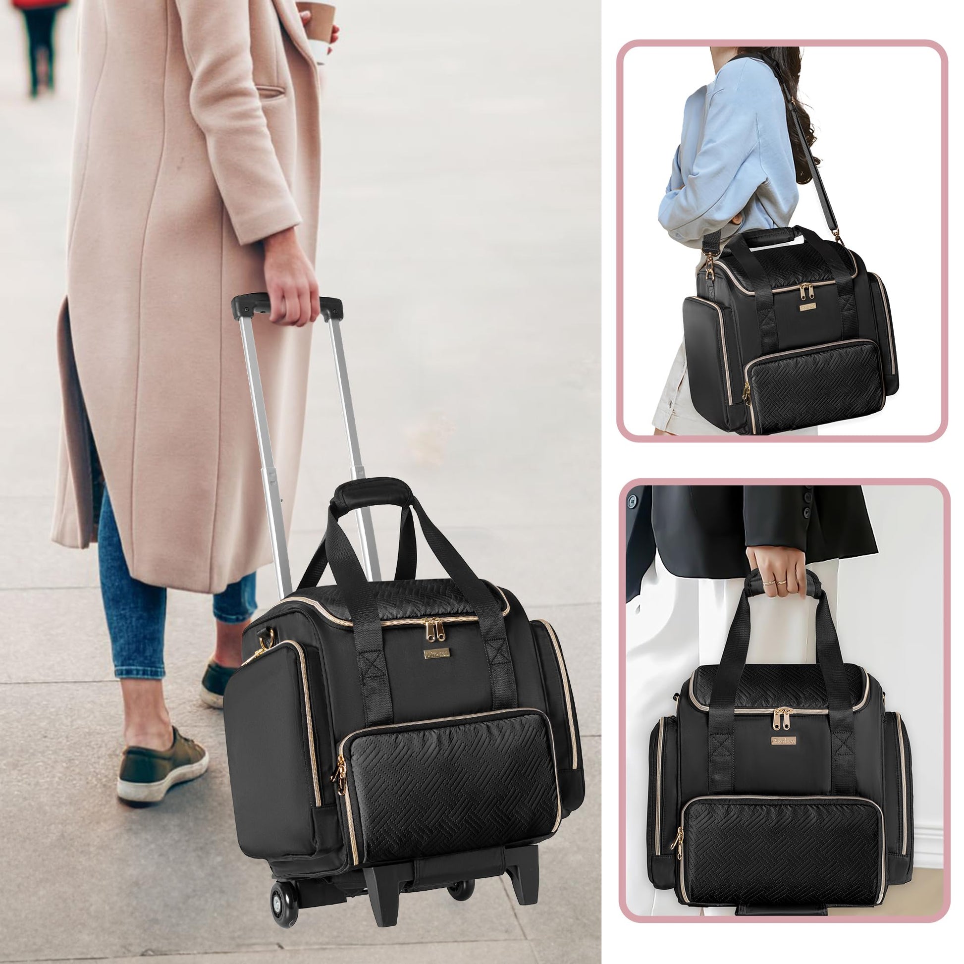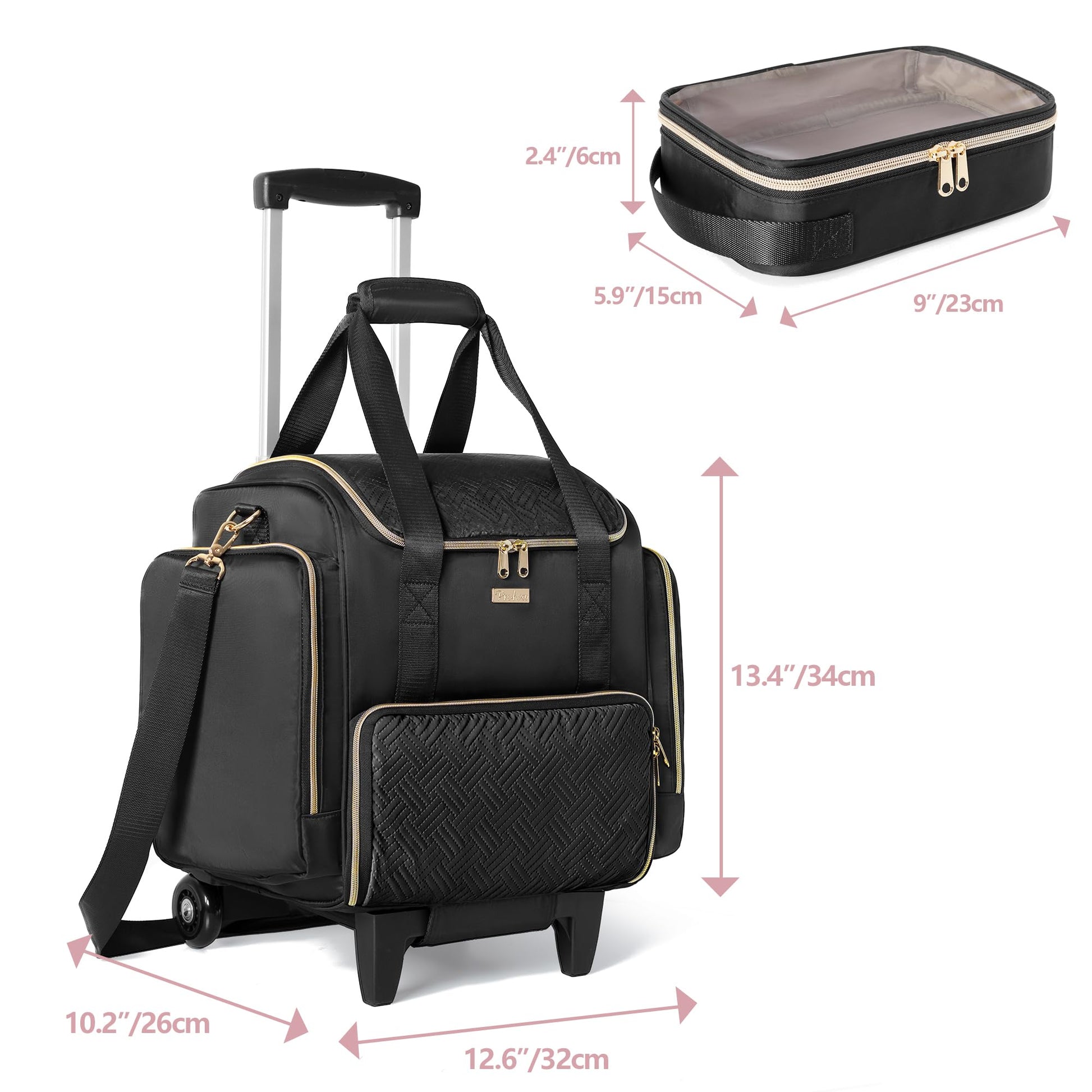 Prokva Rolling Makeup Case with 4 Removable Bags, Professional Makeup Train Case with Wheels, Makeup Artist Travel Bag with Brushes Storage Section, Black (Patent Design)