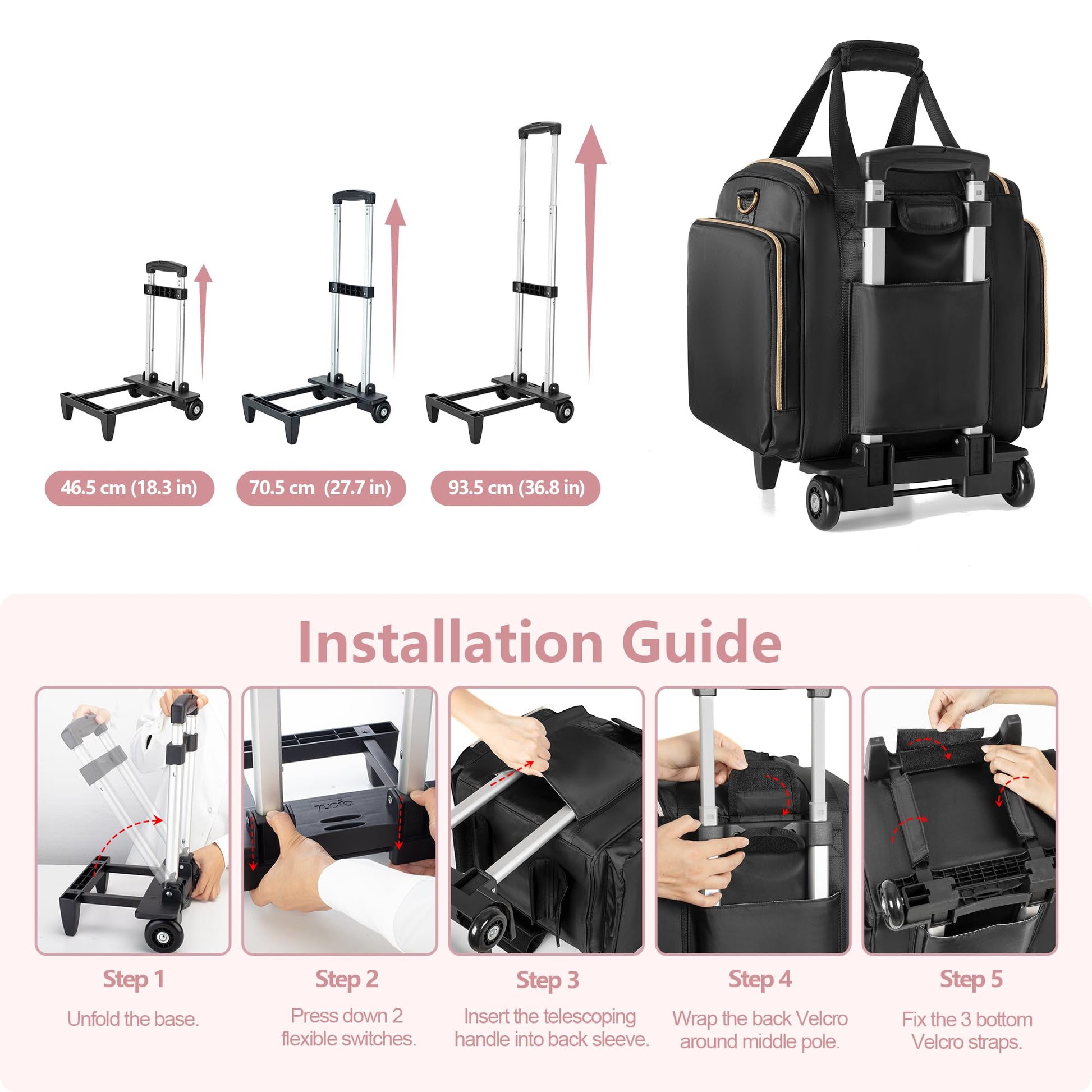 - 【3 CARRYING OPTIONS】 Prokva makeup train case equipped with top handles and a detachable shoulder strap, ideal for a cosmetologist or makeup artist on the go. Upgraded detachable trolley features an extendable handle up to 36.8 inches and reinforced legs, makes it more comfortable to carry the cosmetic suitcase.