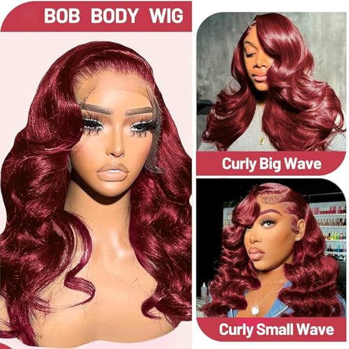 Reddish Brown Bob Wig Human Hair Body Wave 13x4 HD Lace Front Wigs Human Hair 16Inch 33# Body Wave Lace Frontal Wig Pre Plucked 180% Density Wine Red Bob Wigs for Women
