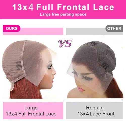 - Reddish Brown lace front wigs human hair Texture:Reddish Brown lace front wig human hair, 13X4 HD LACE LARGE SPACE--The 13x4 full frontal wigs are the most versatile and offer a full frontal parting, 13x4 hd lace front wigs human hair 180% density allowing you to create any parting style you desire. Say goodbye to limited side parting!