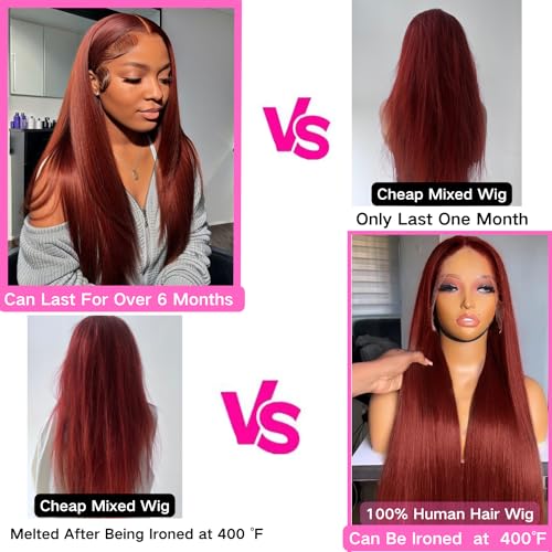 - Reddish Brown wig Lace Front Wigs Human Hair Material:100% Human Hair Straight lace front wigs human hair 10a grade 100% unprocessed human hair wig,cut from young donor directly,No shedding,no tangling. The hair is soft, natural look,full and thick,health and comfort,smooth and bouncy, with natural luster and color. makes you outstanding and attractive in the crowds.